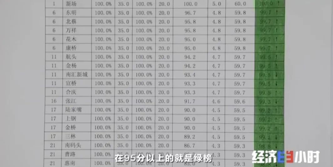 按照评分,95分以上的是绿榜,95分和85分之间是黄榜,85分以下就进入了红榜,如果进入红榜、黄榜,街镇要进行上门约谈,对他们存在的问题进行督办和整改。