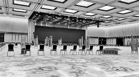 世界互联网大会·互联网发展论坛的主会场设在乌镇厅,昨天记者到达会场大厅时,已经是下午5点半,但会场仍在整修,厚厚的地毯上,桌椅被挪开,脚手架开始搭建,显得很空旷。
