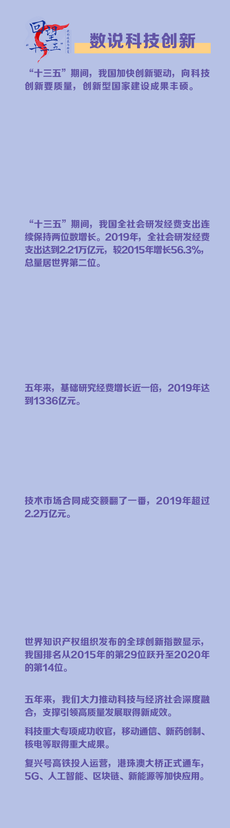 “十三五”期间,我国科技创新的力量喷涌迸发,创新创业的浪潮席卷全国,带动着社会经济生活向着未来加速奔跑。