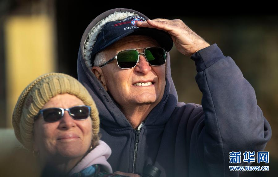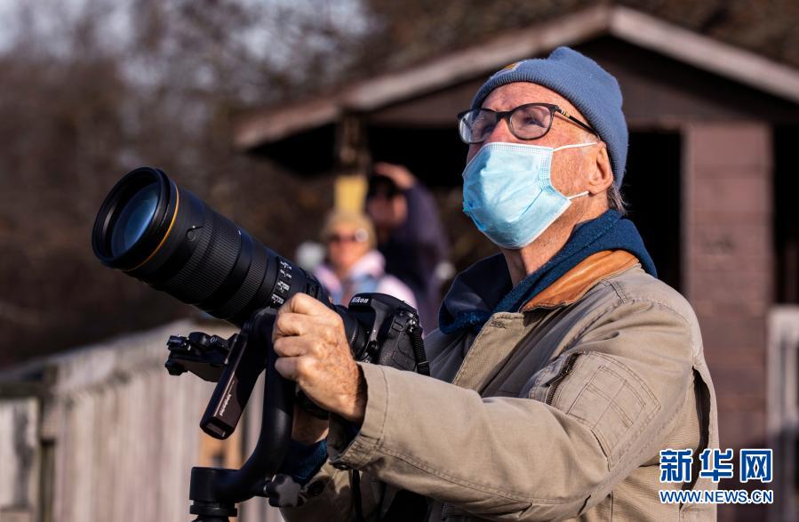 11月19日,在美国印第安纳州梅达里维尔,游客用望远镜观赏沙丘鹤。