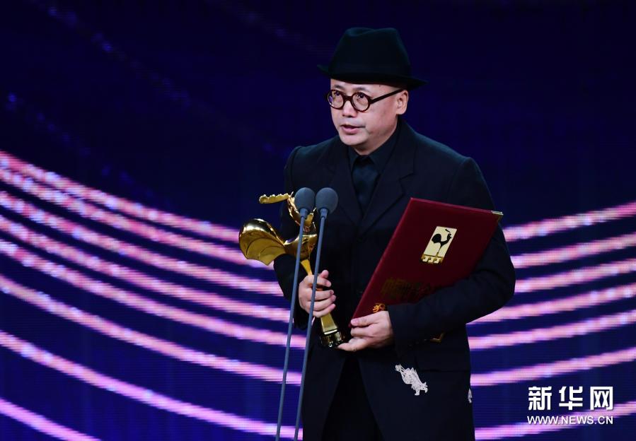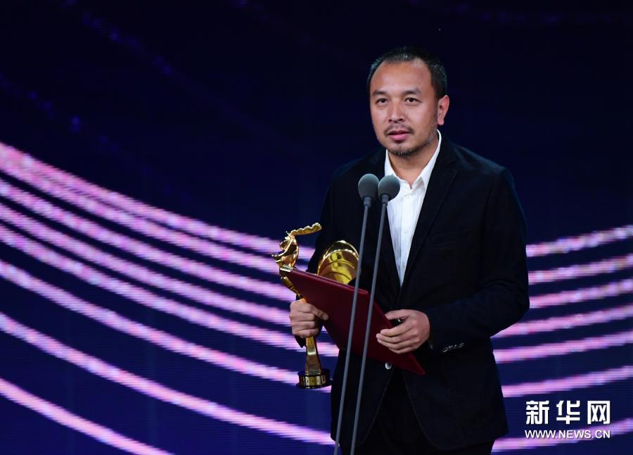 11月28日,电影《掬水月在手》获得最佳纪录/科教片奖。这是《掬水月在手》出品人毛继鸿发表获奖感言。新华社记者 魏培全 摄