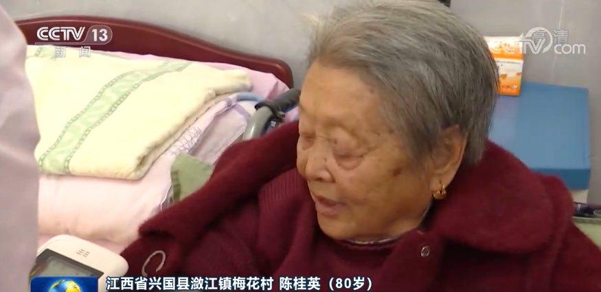 江西省兴国县潋江镇梅花村 陈桂英(80岁):生活条件好,医疗条件好,那个医生一天到晚都在这里巡逻,我们在这里住得很开心,党的政策好,习主席关心老人家。