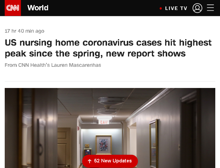 △CNN报道,最新报告显示,美国养老院新冠肺炎确诊病例创春季以来最高