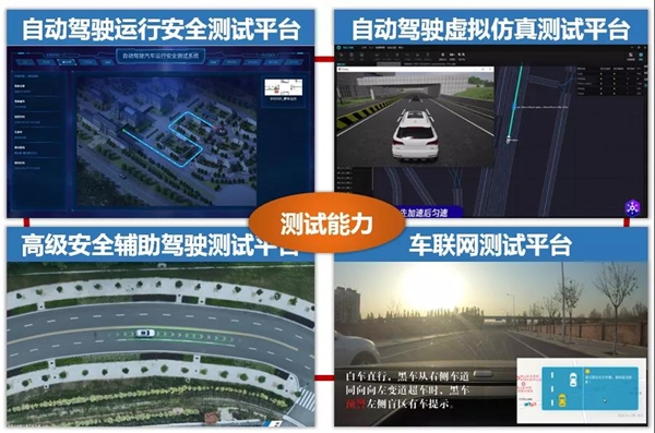 为解决无人驾驶遇到的真实问题,基地搭建了四个研究平台,分别是自动驾驶运行安全测试平台、自动驾驶虚拟仿真测试平台、高级安全辅助驾驶测试平台、车联网测试平台。