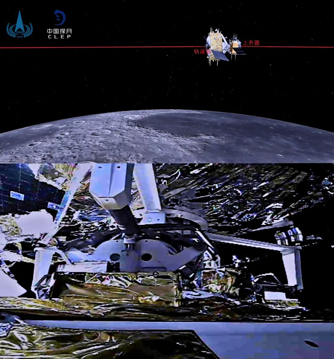 后续,嫦娥五号轨道器和返回器组合体将与上升器分离,择机返回地球。