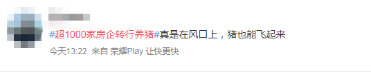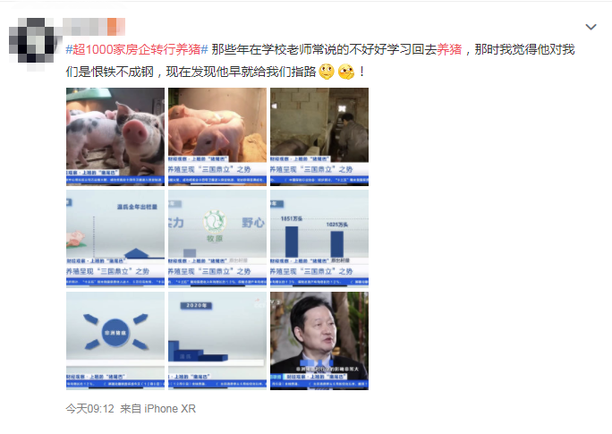 房企跨行养猪,不少网友直呼看不懂,也有不少网友纷纷调侃:“那些年在学校,老师常说的不好好学习回去养猪,当时我觉得他对我们是恨铁不成钢,现在发现他早就给我们指路。”