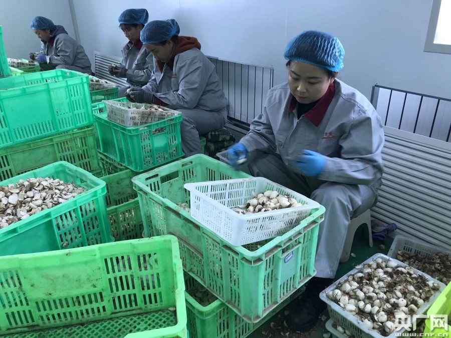 工人包月芳在加工百合(央广网记者 陈庚 摄)