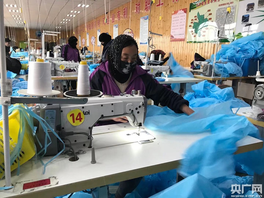 眼下,山大沟深的临夏州东乡县天寒地冻,位于拱北湾村的扶贫车间里却热火朝天,五六十名缝纫女工正在紧张加工赶制防护服、棉服,这个由厦门市湖里区投入120万元帮助建设的扶贫车间,位于易地搬迁安置点中心区域,劳动力相对密集,方便当地贫困户妇女就近就业、稳定脱贫。车间负责人李银芳告诉记者:“我们现在都是实行的计件工资,像防护服这一块儿,咱们的女工一天已经最多能挣到125块钱。咱们这儿的员工多数都是在新农村住,就很近。”