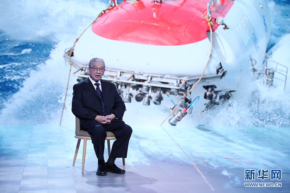 中国工程院院士、载人潜水器“蛟龙号”总设计师徐芑南讲述探索神秘海底世界背后的故事。新华网 焦鹏 摄