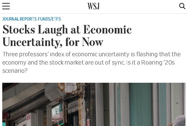 在美国经济不确定性接近历史高位之际,股市竟也达到历史高位,令外界众说纷纭。