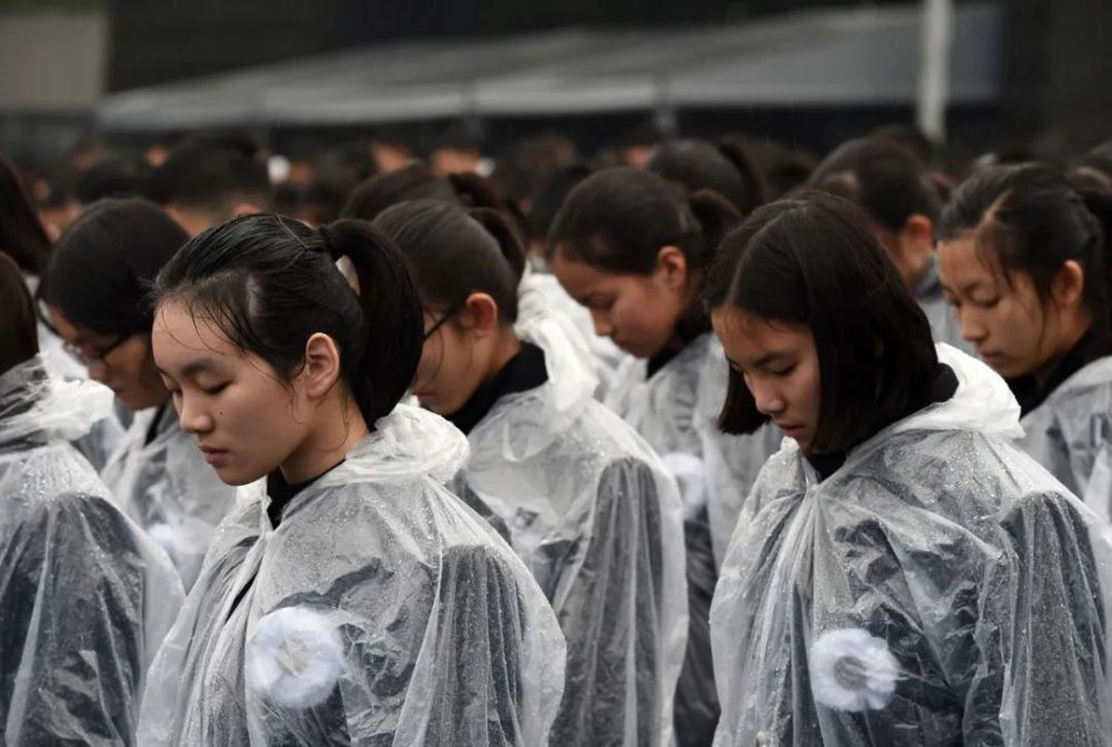 ↑2016年12月13日,学生代表在南京大屠杀死难者国家公祭仪式上默哀。新华社发