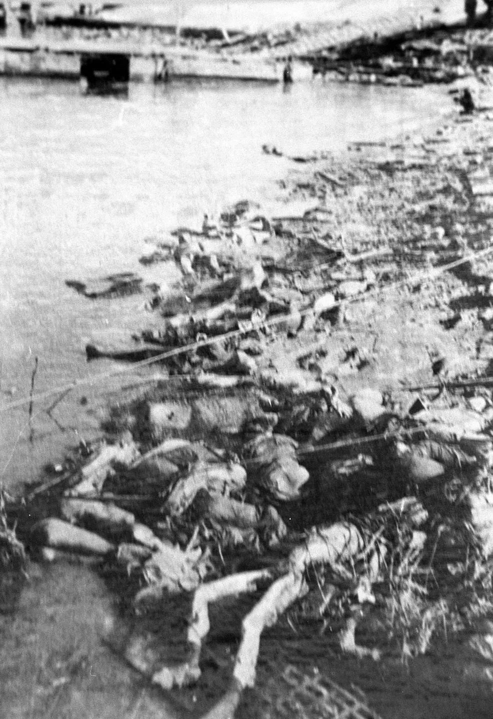 ↑日军将大批南京青壮年捆绑后,押往郊外集体屠杀。新华社发