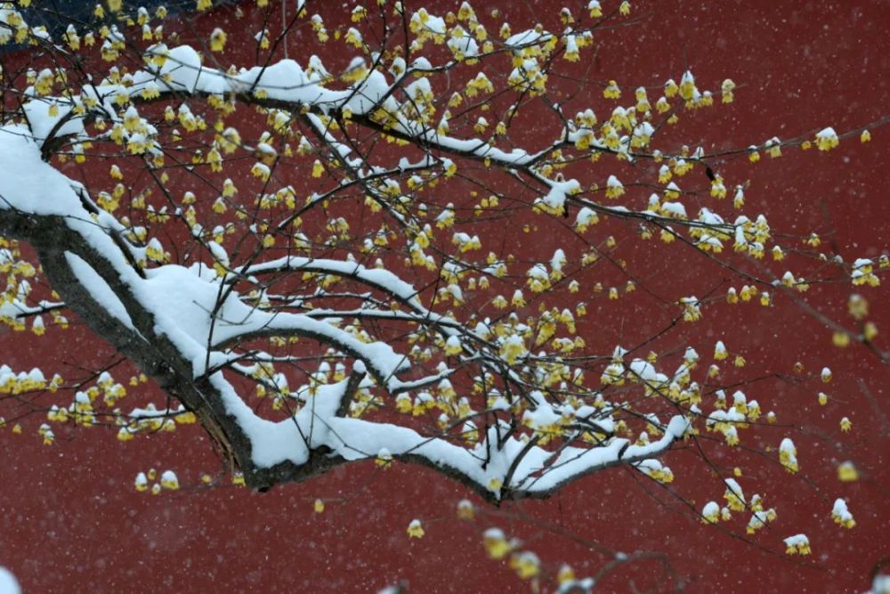 ↑这是2018年1月27日在南京市明孝陵景区内拍摄的雪中梅。新华社发(王跃武摄)