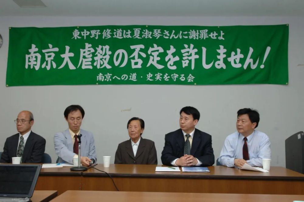 ↑2019年12月3日,南京大屠杀幸存者葛道荣(前排左一)、夏淑琴(前排左二)、艾义英(前排右一)及新确认死难者周万荣的女儿陶秀华(前排右二)在家祭活动现场。新华社记者 李博 摄