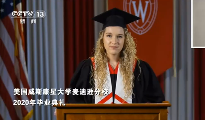 王徐婉琪:现在疫情的情况导致我其实是在开学一段时间以后,才收到这样的一个东西,它其实也是目前家里面所有的,唯一一个我跟大学之间的这样一种联系,所以是个很宝贵的意义,平时坐在这里上网课的时候,也会去看一看这个东西,提醒自己这样的一个身份。我记得印象特别深刻,之前还跟教授开玩笑,我有可能是南加大唯一一个从来没有去过南加大校园,但是最后拿到毕业证的一个学生。