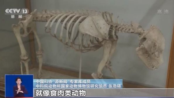 中科院动物所国家动物博物馆研究馆员 张劲硕:大熊猫我们叫孑遗物种,非常古老,它那个时代的话有披毛犀,有猛犸象,有剑齿虎,特别是在北京周口店,过去还出土过大熊猫的化石。当然更早的话800万年前甚至更早的时候,大熊猫祖先很小,它就跟今天的一个松狮(犬)或者一条狗那么大。