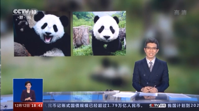 说到这儿,来跟大家玩儿个找不同的游戏。现在大屏幕上出现的这两只大熊猫,您能看出有什么不一样吗?肯定不是一个笑了一个没笑啊。告诉大家,画面左边,张嘴挥手的这一只,是四川大熊猫;而画面右边的这一只是陕西秦岭大熊猫。它们绝不只是老家不同,而是两个亚种。也就是说,我国不光有大熊猫,还有两种大熊猫。