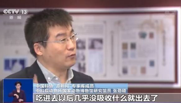 中科院动物所国家动物博物馆研究馆员 张劲硕: 实际上我们俗话叫“直肠子”,吃进去以后几乎没吸收什么就出去了,所以它熊猫粪特别清香,是竹香味...甚至的话你看很多大熊猫保护区的工作人员捡了大熊猫粪干什么?可以把它做成熊猫纸,熊猫纸作为这种文创产品卖出去以后,它获得的这些钱还可以再支持大熊猫的保护,特别好。