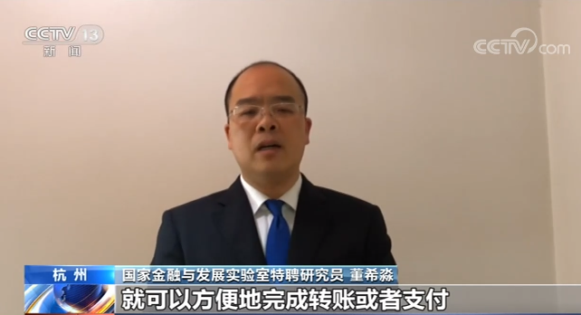 国家金融与发展实验室特聘研究员 董希淼:从作为电子支付的角度看,央行数字货币有它突出的特点,它不依托于银行账户和支付账户,只要你装有数字货币钱包,你就可以使用央行数字货币。