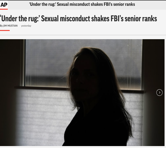 美联社在调查报道中列举了过去5年内FBI发生的6起性侵指控,然而,涉事高官中除1人被剥夺获得机密文件的安全许可权利外,其余几人均未受到任何相关处分。