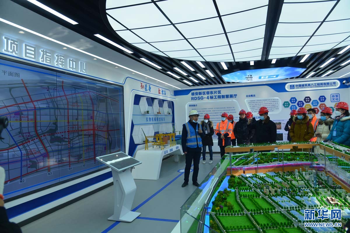 采访团首先来到了雄安新区容东片区综合管廊RDSG-4标段项目5G智慧展厅。“信息集成大屏能做到3D实时动态影像,同时可通过app直接观看现场实时施工动态,实现了5G智慧工地建设,既保证了项目建设的速度,又保证了施工的质量,还能及时发现各种问题并提出整改措施。”展厅负责人表示。