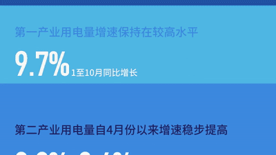 分行业看:1月至10月,计算机/通信和其他电子设备制造业、汽车制造业、电气机械和器材制造业、通用设备制造业、医药制造业同比分别增长14.4%、11.9%、6.6%、4.5%和3.6%;信息传输/软件和信息技术服务业用电量同比增长25.7%。