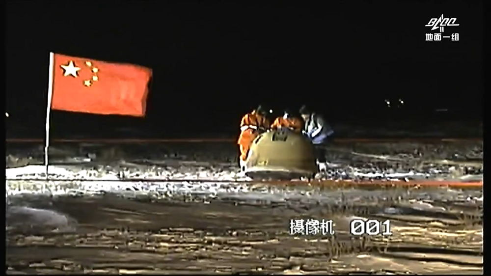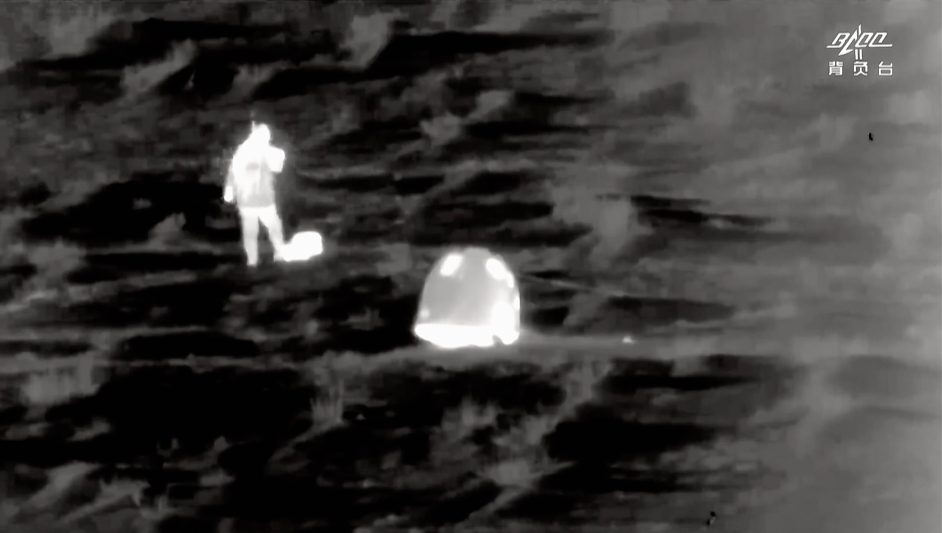 △红外影像显示一只小动物从嫦娥五号返回器前跑过