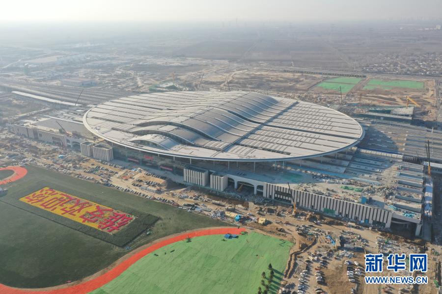这是河北雄安站(无人机照片,12月16日摄) 。新华社发(中铁建工集团雄安站项目部供图)