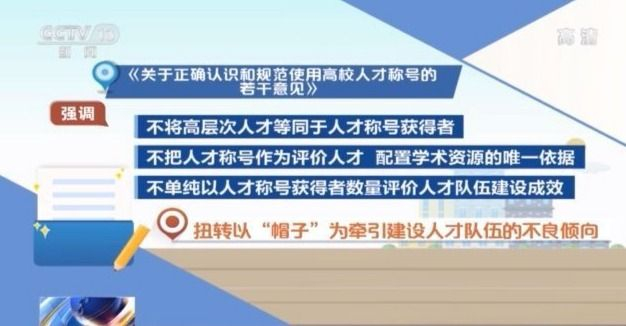 教育部近日印发《关于正确认识和规范使用高校人才称号的若干意见》的通知,要求扭转“唯帽子”倾向,推进人才称号回归学术性、荣誉性本质。