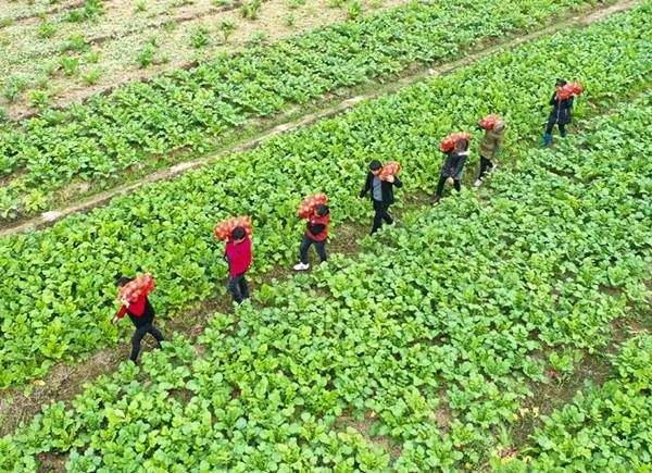 在永州市道县柑子园镇善祥村,几个村民开心地在地里拔萝卜,并精心帮顾客挑选优质的把截萝卜,“把截萝卜”成农民的“致富法宝”。