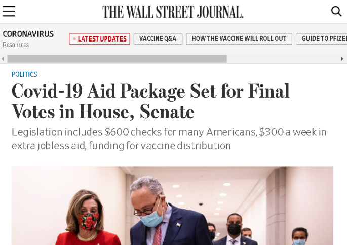 △《华尔街日报》报道,新一轮新冠疫情纾困法案将在美国国会参众两院进行最后表决