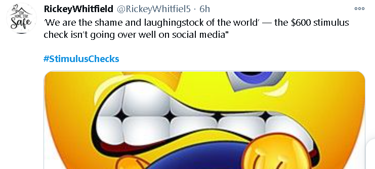 相比政治人物对于纾困力度的谨慎保留态度,美国民众的反应显然更加激烈。在社交媒体推特上,#StimulusChecks(刺激支票)成为热搜,许多网民通过图文并茂的方式,揶揄纾困法案的支付力度严重不足。