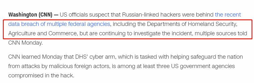 然而,美国国务卿蓬佩奥18日却公开宣称,“现在我们可以相当清楚地说,参与这次活动的是俄罗斯人”。对此,俄驻美使馆表示美方指控毫无根据。俄联邦委员会(议会上院)捍卫国家主权和防止干涉内政临时委员会主席克利莫夫更是反唇相讥:俄罗斯敏感部门遭到的网络攻击中有48%至52%来自美国,甚至有专家认为来自美国的网络攻击占全部攻击的三分之二。