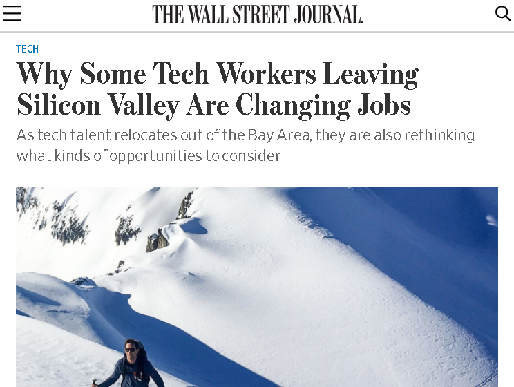 长期以来,旧金山湾区一直是对科技人才最有吸引力的区域。而如今,越来越多住在这些科技中心的人才,开始向位于中小城市的科技公司投递求职申请。
