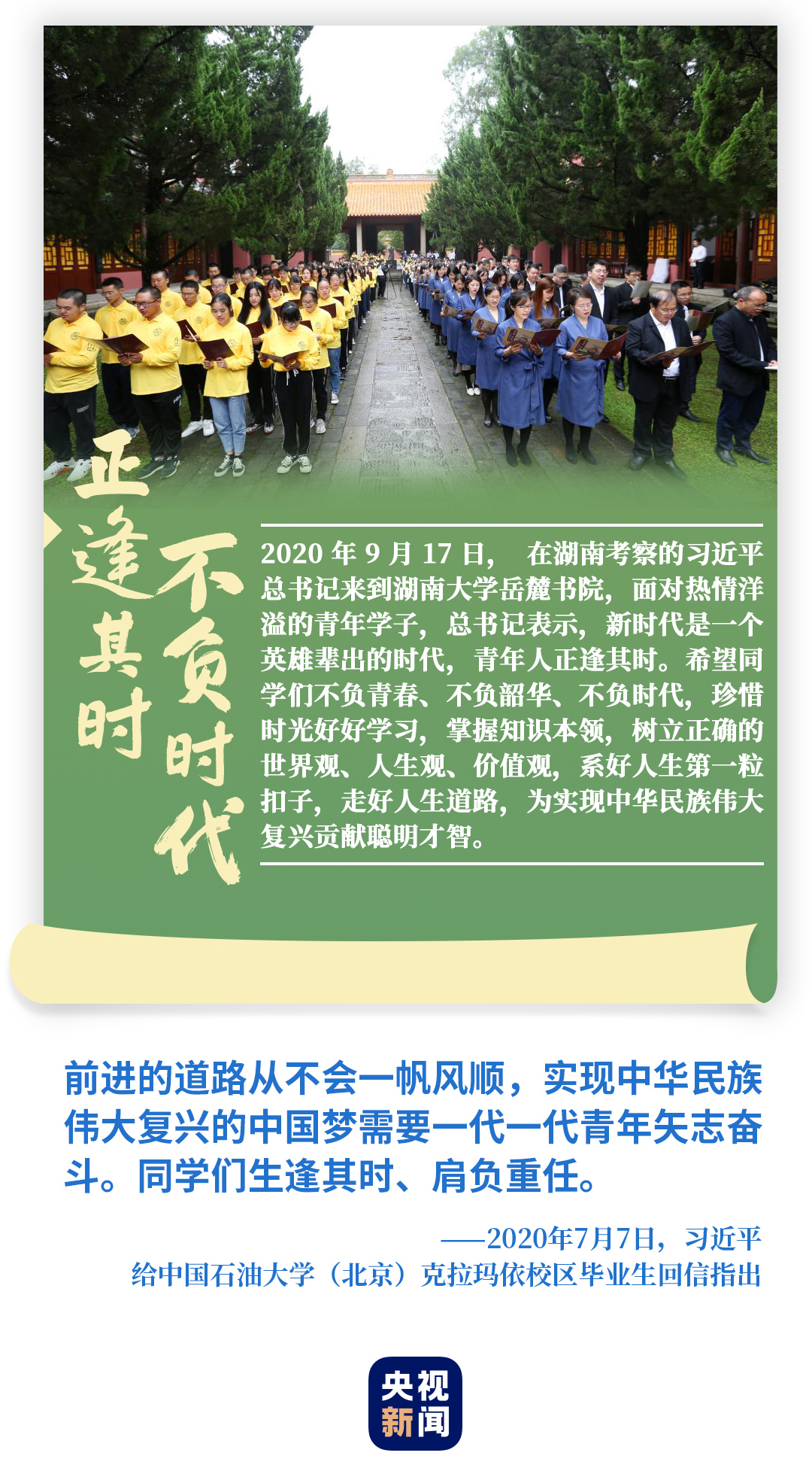 习近平总书记多次与青年朋友座谈、给他们回信,勉励大家不畏艰难险阻,勇担时代使命,为党、为祖国、为人民多作贡献。