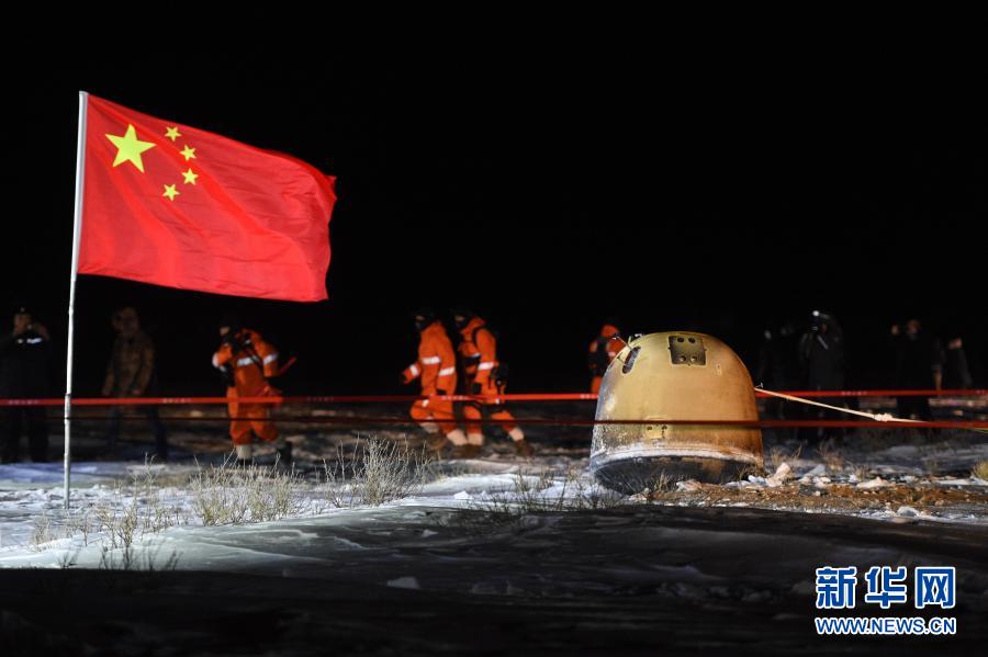 12月17日凌晨,嫦娥五号返回器携带月球样品,在内蒙古四子王旗预定区域安全着陆。新华社记者 连振 摄