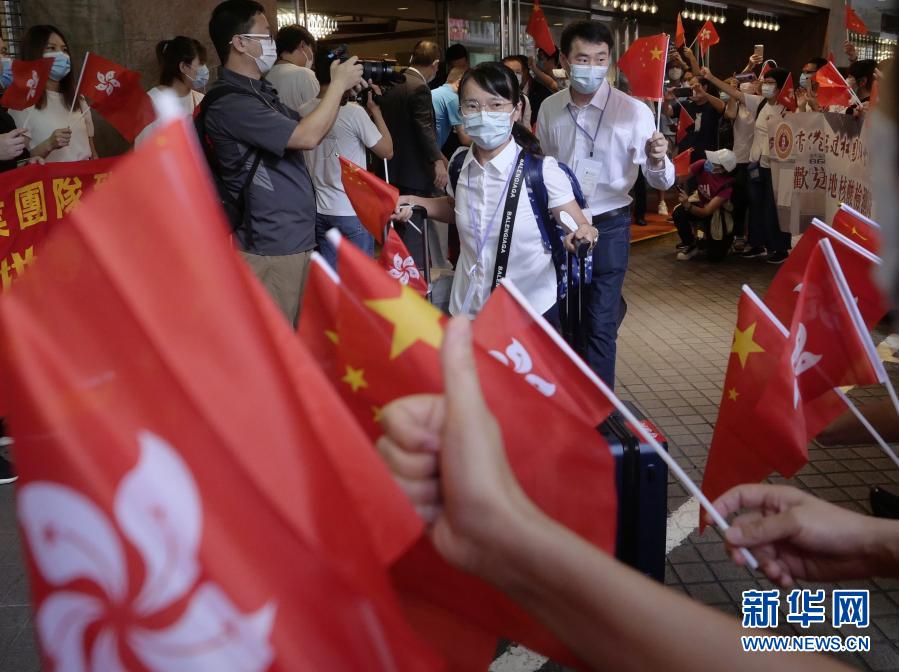 9月16日,圆满完成协助香港特区抗疫任务的内地核酸检测支援队队员们离开香港,香港市民夹道欢送。新华社记者 王申 摄
