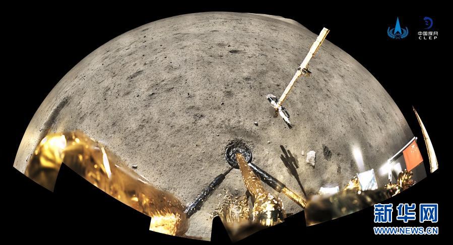 国家航天局12月4日公布的照片中,嫦娥五号探测器携带的一面由新材料制成、仅12克的五星红旗展示在月球表面。新华社发(国家航天局供图)