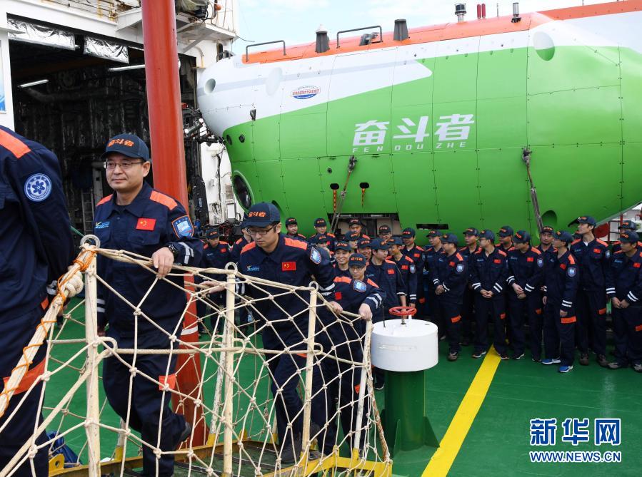 11月28日,在海南省三亚市南山港,在马里亚纳海沟成功实现10909米坐底纪录的“奋斗者”号载人潜水器随“探索一号”科考船胜利返航。新华社记者 陈凯姿 摄