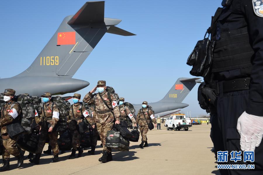 2月17日,军队支援湖北医疗队员抵达武汉天河机场。新华社记者 黎云 摄