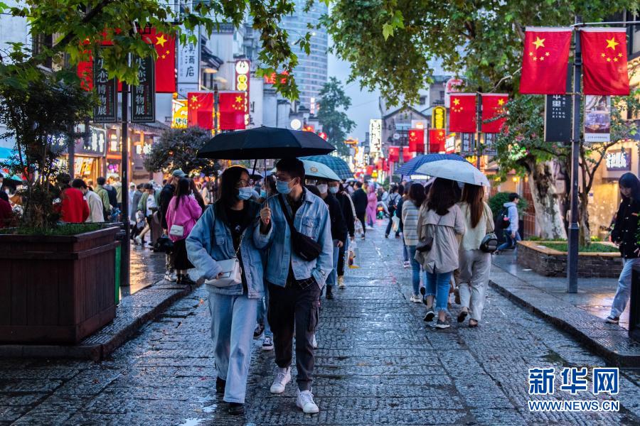 10月5日,湖南长沙太平街上人群熙熙攘攘。新华社记者 陈思汗 摄