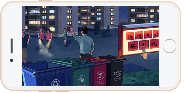 该H5作品整体上采用沉浸式情景体验模式,综合运用手绘长卷+动画交互+场景收音+短视频展现等多媒体表现形式,实现新闻作品从可读到可视、从静态到动态、从一维到多维的升级,满足受众多元化的体验需求。作品精彩呈现了参加“海河夜话”实践活动的党员干部带着感情去访,“身入”群众、“心至”群众的细腻场景,也充分反映出社区群众有所呼、党员干部有所应的担当精神。