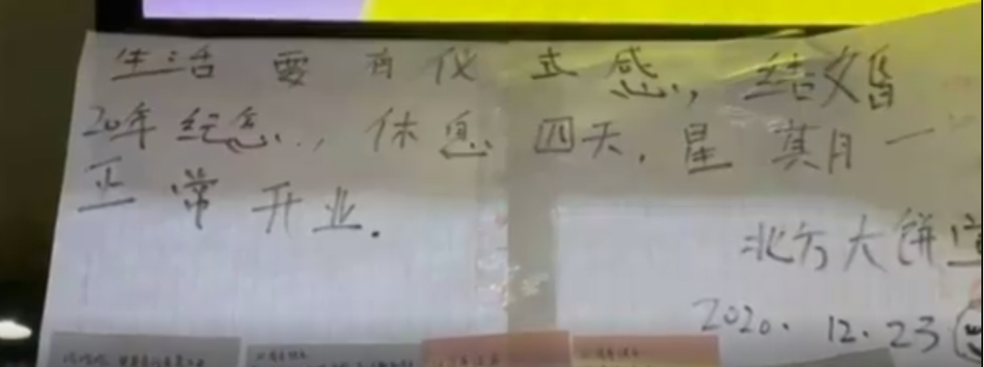 生活要有仪式感,结婚20年纪念,休息四天,星期一正常开业。