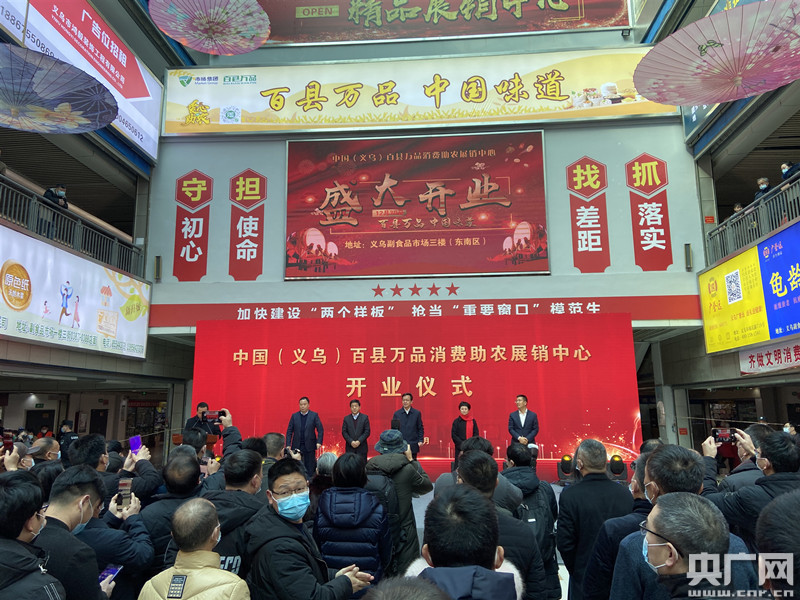 央广网义乌12月31日消息(记者张国亮 通讯员陈华栋)作为义乌市东西部扶贫协作等工作的重要项目,中国(义乌)“百县万品”消费助农展销中心12月30日在义乌副食品中心盛大启幕。同日,“百县万品”微商城正式上线运营。计划至2021年,“百县万品”消费助农规模将从“千万元级”提升为“亿元级”,每年至少带动1000户脱贫人员稳定增收1000万元。