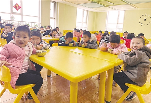 和政县嘉庚实验幼儿园的孩子们正在吃午饭。 经济日报-中国经济网记者 薛志伟摄