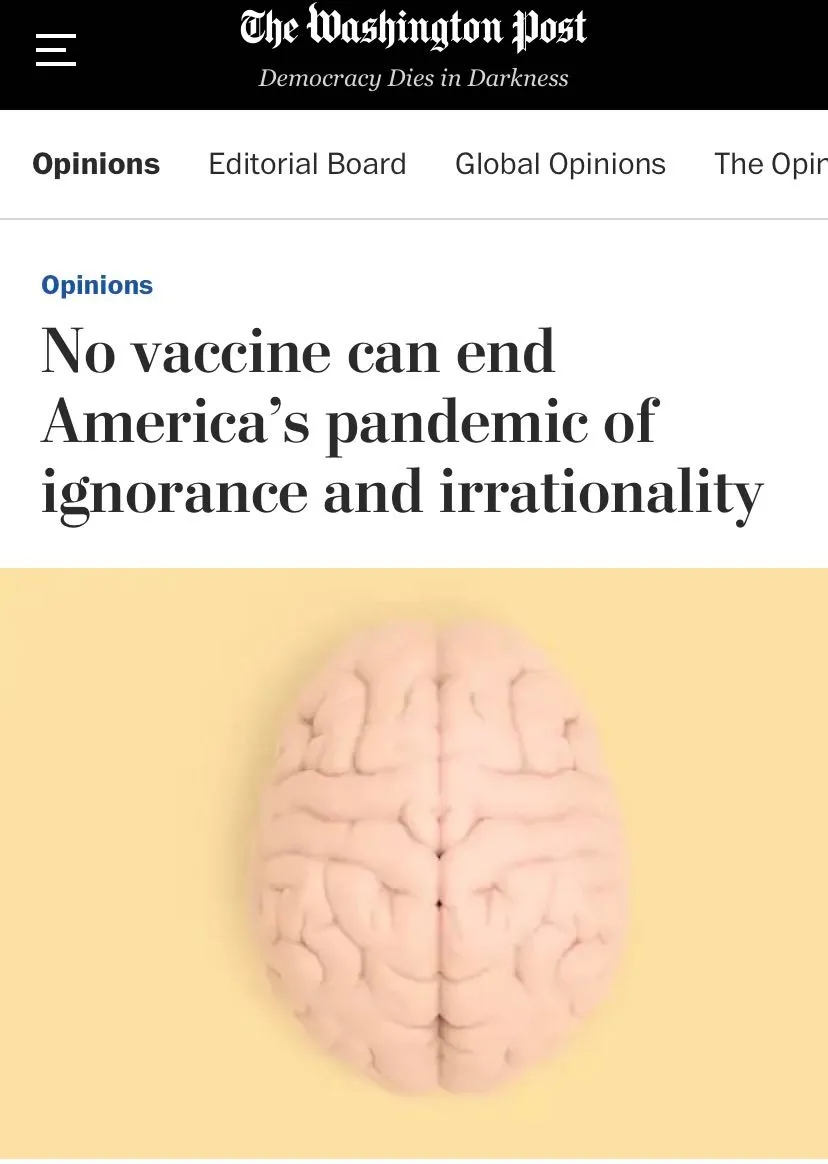 《华盛顿邮报》近日发表评论文章说,虽然美国开始了疫苗接种,但疫苗却无法终结美国的“无知和不理性”。