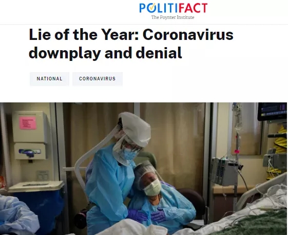 近日,“淡化及否认新冠肺炎疫情”被美国“政治事实”时政新闻网评为美国2020年的“年度谎言”。