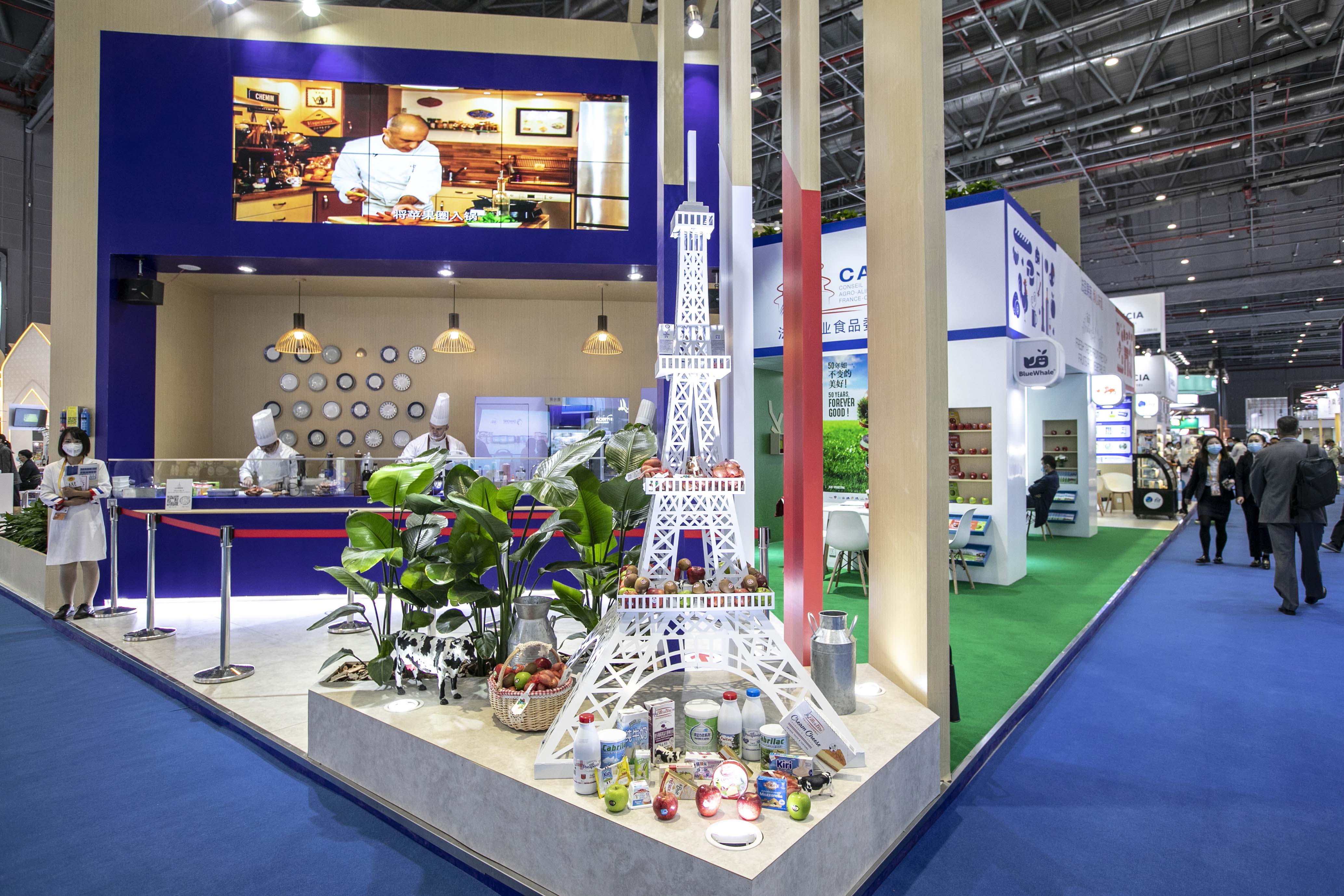 △第三届进博会食品及农产品展区展出的法国食品