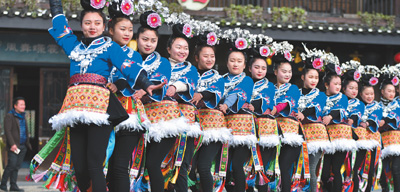 新年第一天,贵州省黔东南苗族侗族自治州丹寨县,人们跳起舞蹈庆祝新年。杨武魁 摄(新华社发)