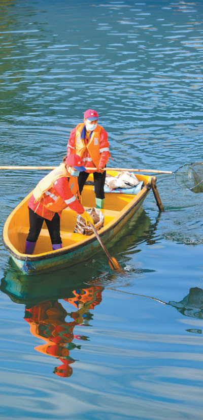 1月1日,广西桂林市龙胜各族自治县环卫站的保洁员坚守岗位,维护河道环境卫生。潘志祥 摄(人民视觉)